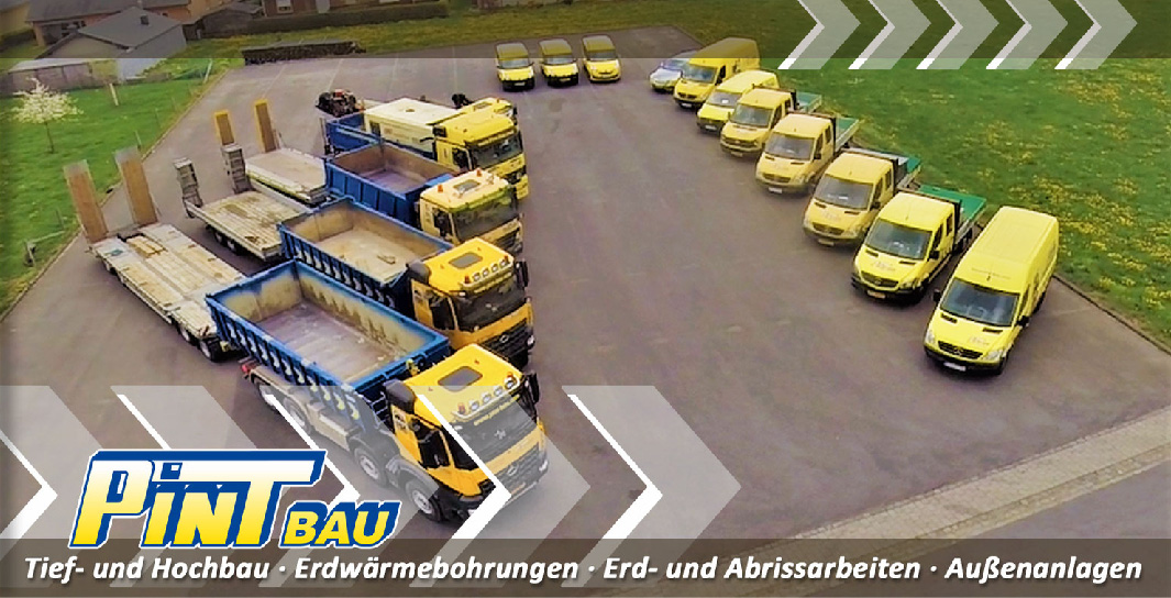 Das Hoch- und Tiefbauunternehmen Pint Bau ist seit 2004 in den folgenden Bereichen für Sie da: Erdbau, Tiefbau, Rohrleitungen, Hochbau, Betonbau, Abbrucharbeiten, Außenanlagen, Natursteinarbeiten, Partner für Fertighausbauer, Geothermiebohrungen, bzw. Erdwärmebohrungen und Brunnenbohrungen.
