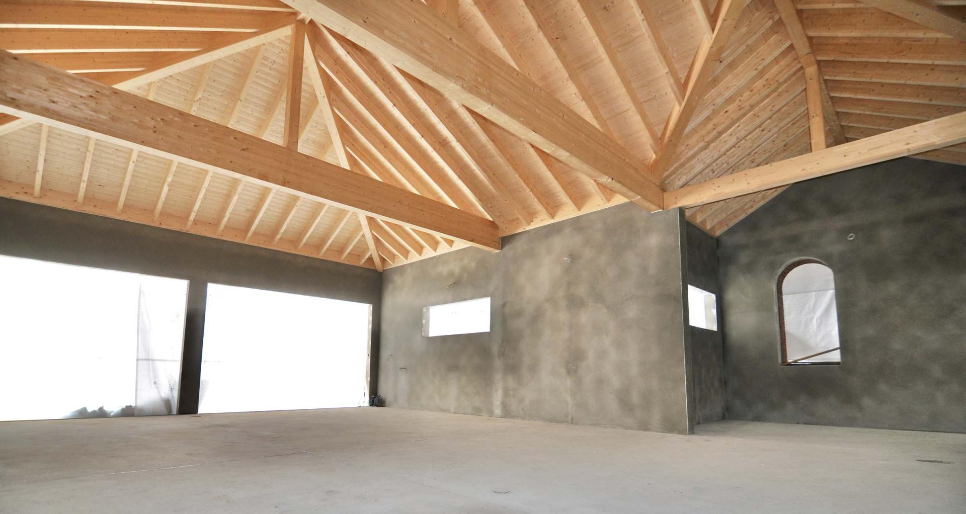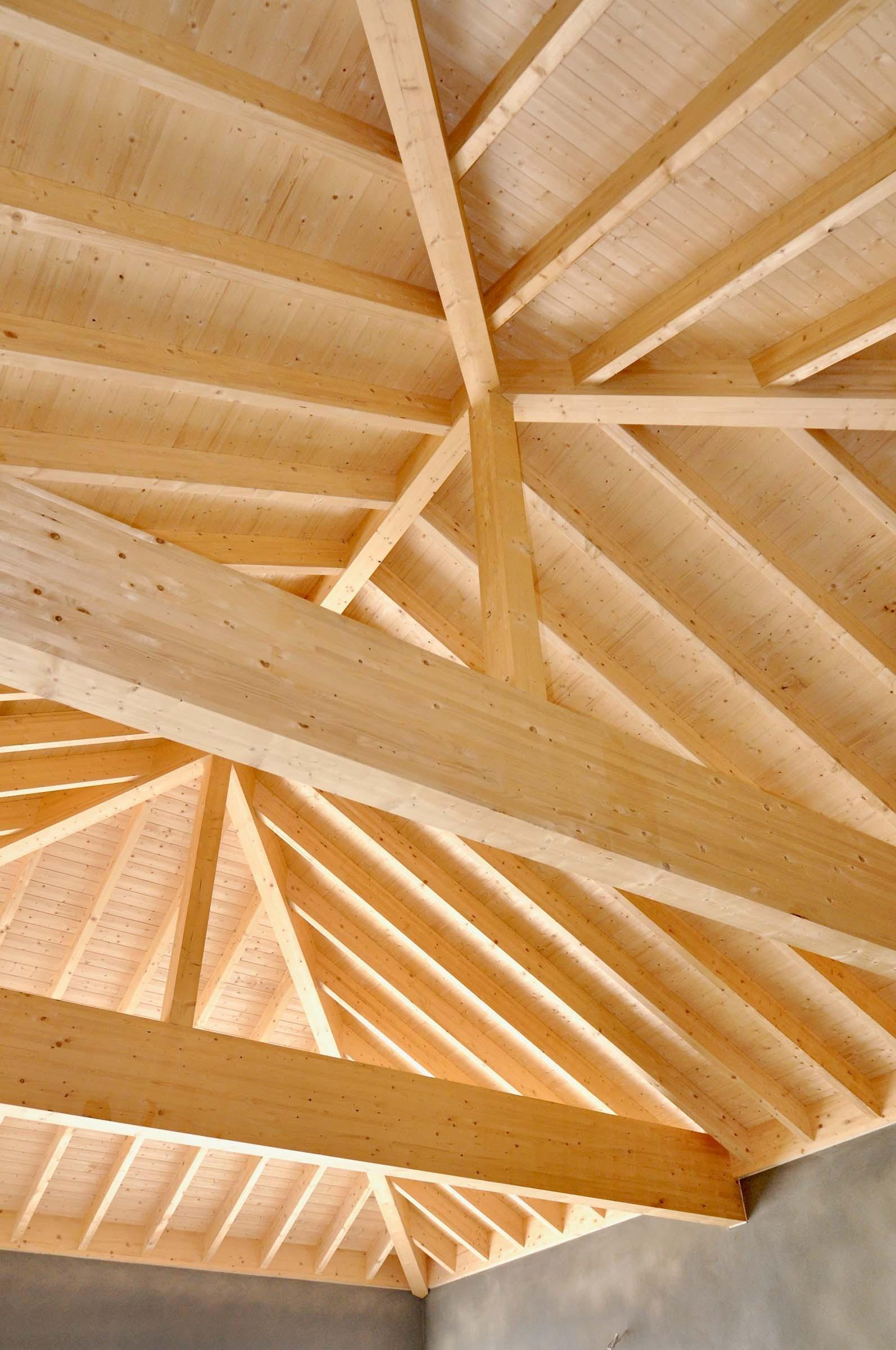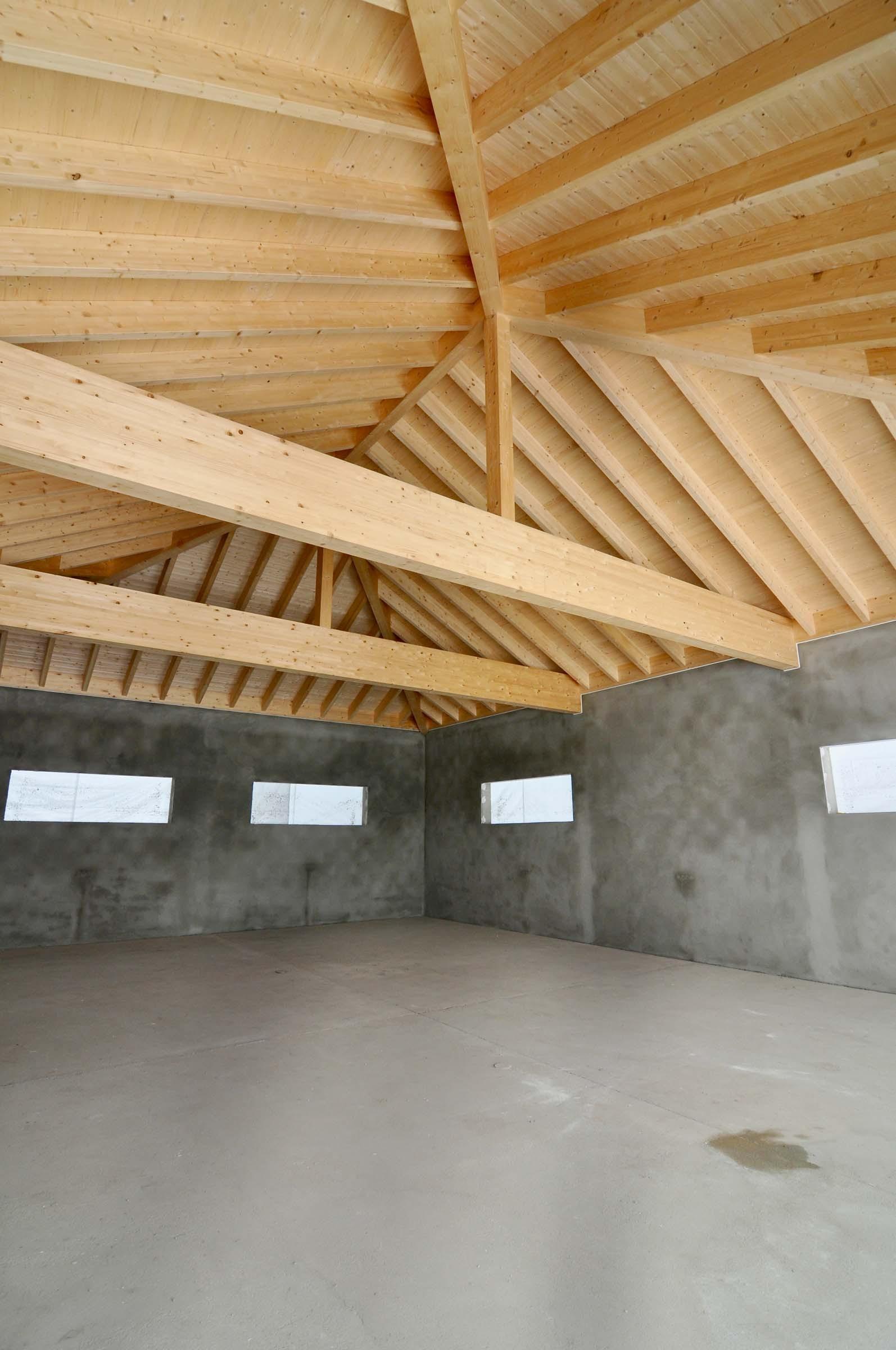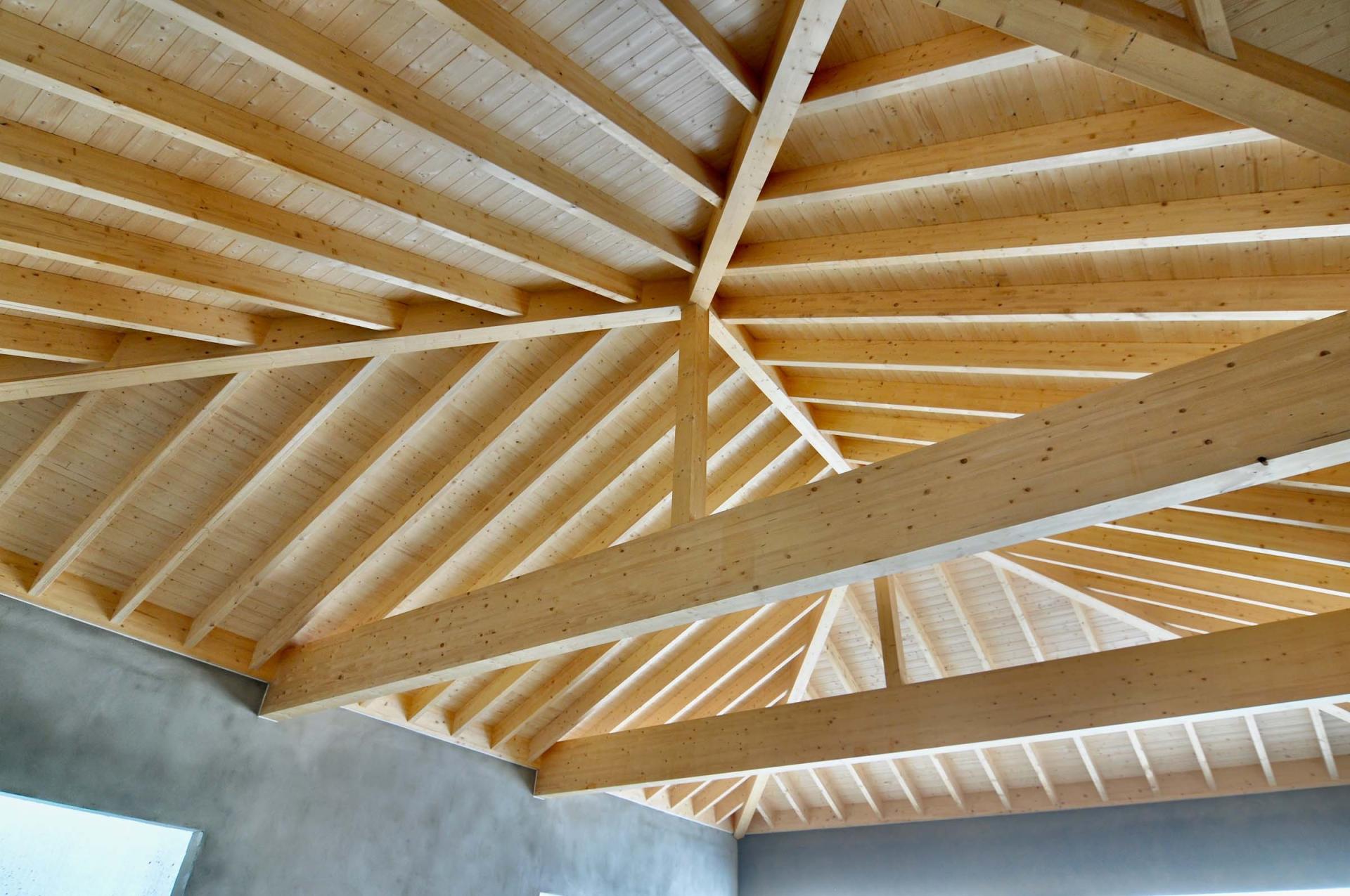 Umsetzung eines Sichtdachstuhls aus Brettschichtholz mit unsichtbaren Verbindungen und maßgefertigter Verkleidung.